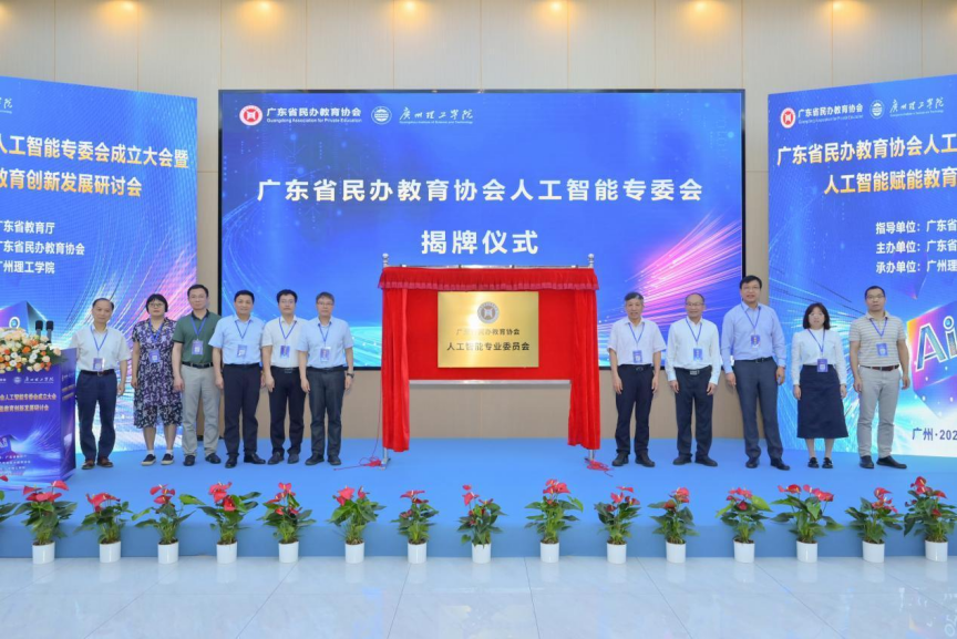 图一 别文群院长等专委会委员为广东省民办教育协会人工智能专委会揭牌